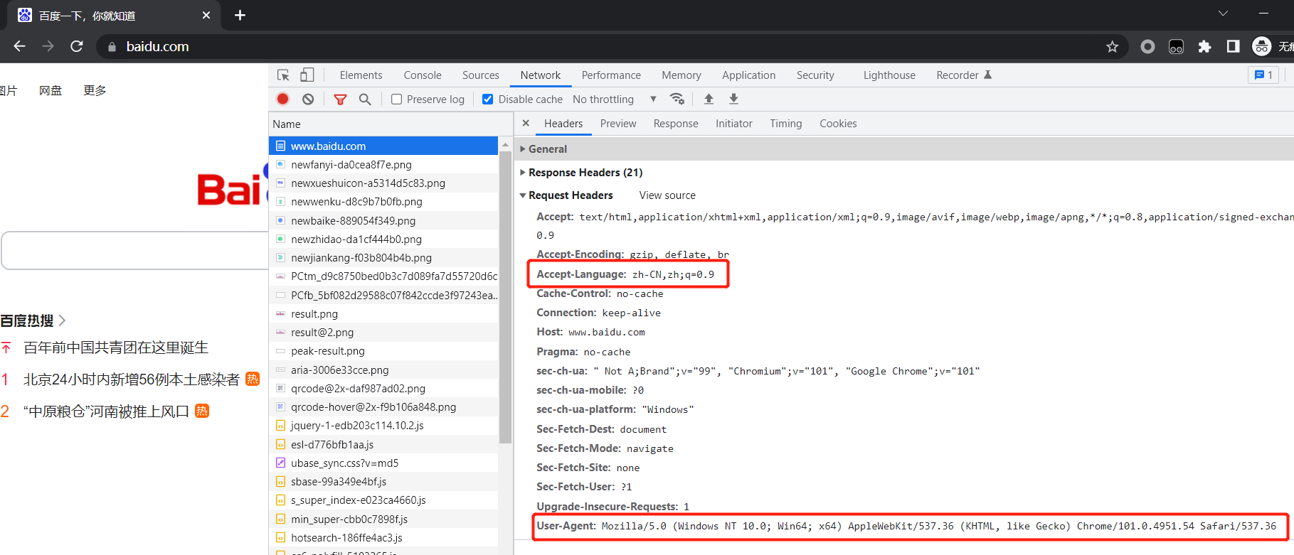 1、浏览器主动发送的信息,包括客户端IP地址、 浏览器用户代理(User Agent,简称 UA)、浏览器可接受的语言;